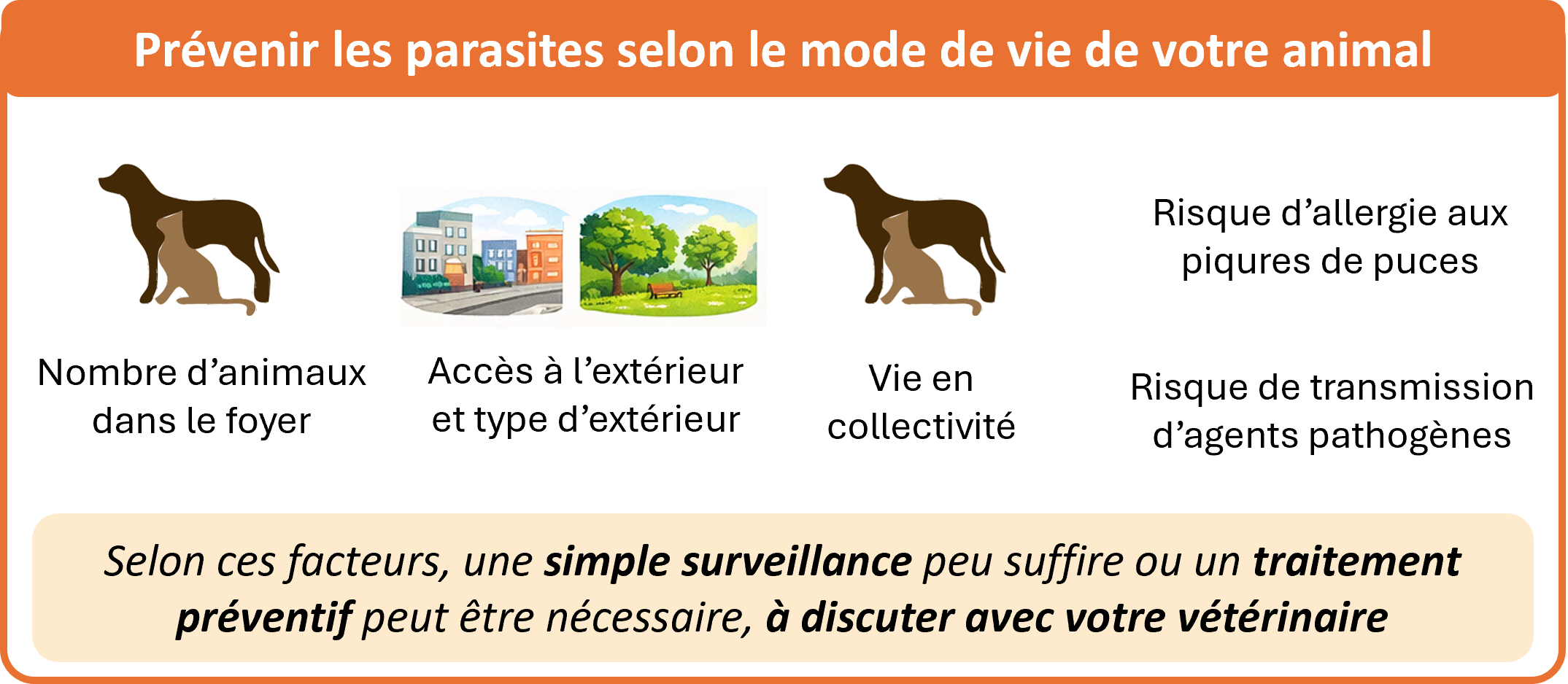 - Estimer avec son vétérinaire la nécessité d'un traitement antiparasitaire externe préventif ou d'une surveillance régulière selon les situations à risque
